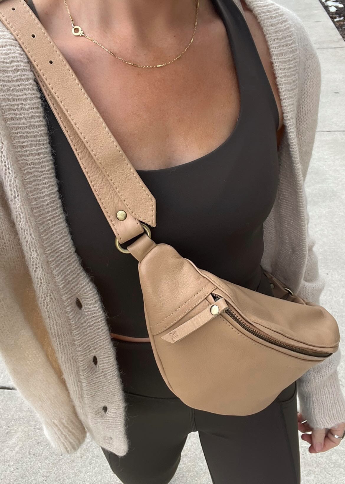Just like with a new pair of jeans, it’s normal for leather dye to loosen and transfer to other materials – especially in the beginning. Our genuine leather fanny packs and accessories are no different. Color transfer is always possible (especially when wet), so avoid wearing light clothing and the rain until your bag is properly worn-in.