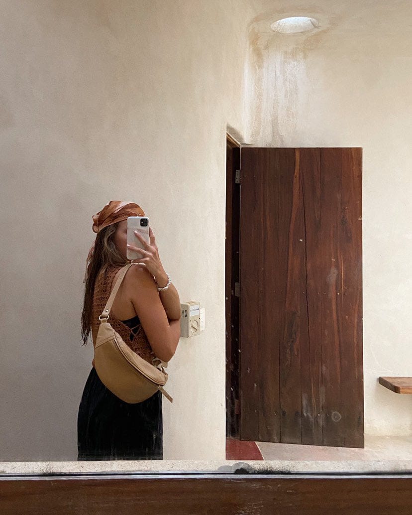 Chase your next adventure and let this timeless leather fanny pack design carry you from plane ride to sunset and everywhere in between. Handmade by artisans in Bali, this roomy design is both elegant and versatile.